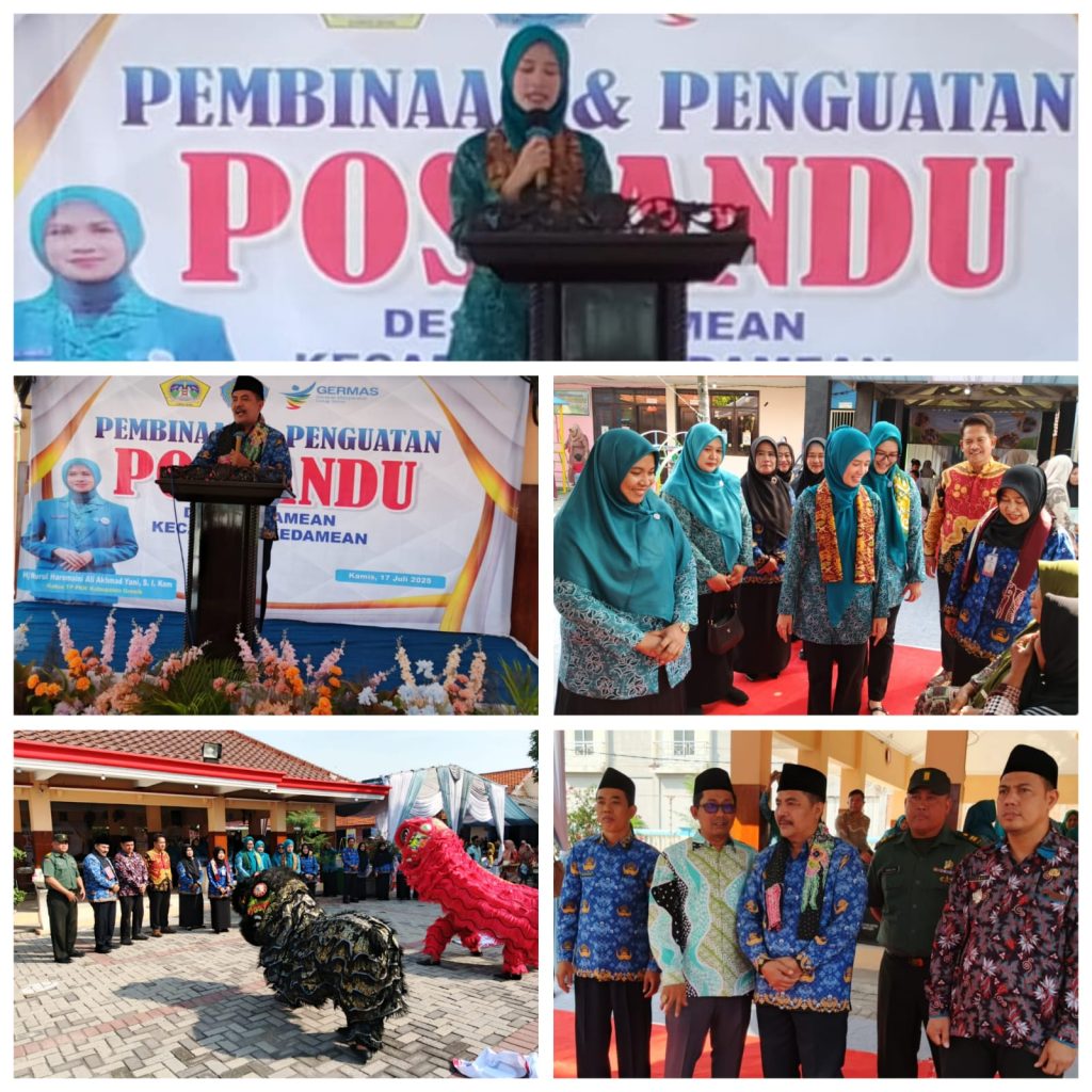 Penggerak PKK Kabupaten Gresik melaksanakan kegiatan pembinaan dan penguatan posyandu di Desa Kedamean, Kecamatan Kedamean, Kabupaten Gresik, Disambut hangat dengan tarian barongsai.