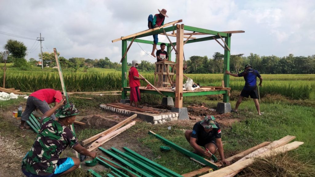 Danramil 0829-18/Kokop Letda Cpl Sudi Susanto menuturkan, progres pembangunan pos kamling yang jumlahnya 2 unit dalam program TMMD ini sudah hampir selesai. “Pengerjaan pos kamling juga terus di kerjakan, sekarang sampai hari ke 19 sudah sekitar 90 persenan,” katanya.