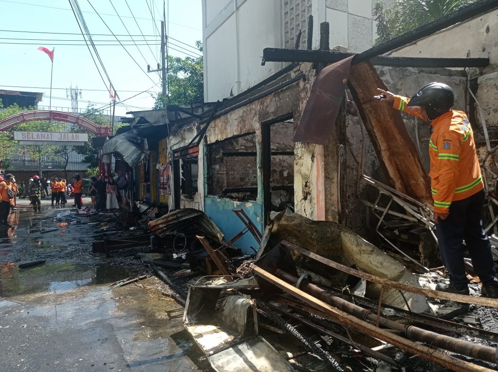 Surabaya, Pojokkiri.com – Kebakaran kios penjahit dan roti di Jalan Tambak Dukuh Gang 1, Kapasari, Kecamatan Genteng, Surabaya, menghanguskan 3 kios Sabtu (29/6/2024).