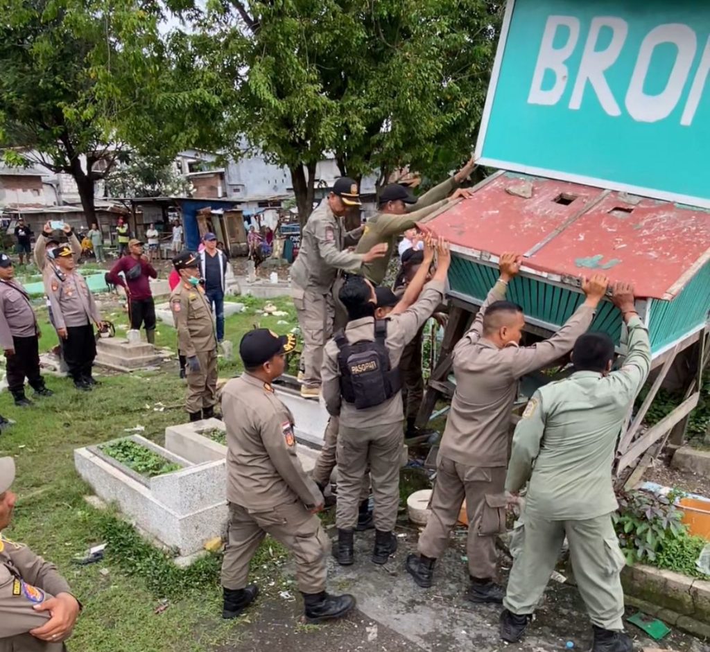 Dengan penuh ketegasan, dua bekupon yang diduga kerap menjadi tempat aktivitas perjudian dilepas dan dipotong-potong sebelum akhirnya diangkut menggunakan kendaraan roda tiga. Langkah ini memastikan agar fasilitas tersebut tidak dapat digunakan kembali. Rombong-rombong liar pun ikut disingkirkan demi menjaga estetika dan ketertiban kawasan makam.