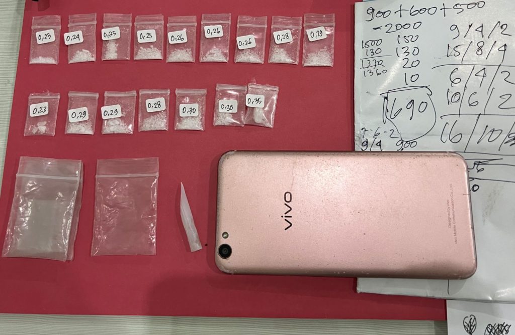 “Selain sabu, petugas juga menyita sejumlah barang bukti lainnya, termasuk dua plastik klip, satu skrop yang terbuat dari sedotan, sebuah buku catatan penjualan, dan satu unit ponsel,” ungkap Kompol Miftah.