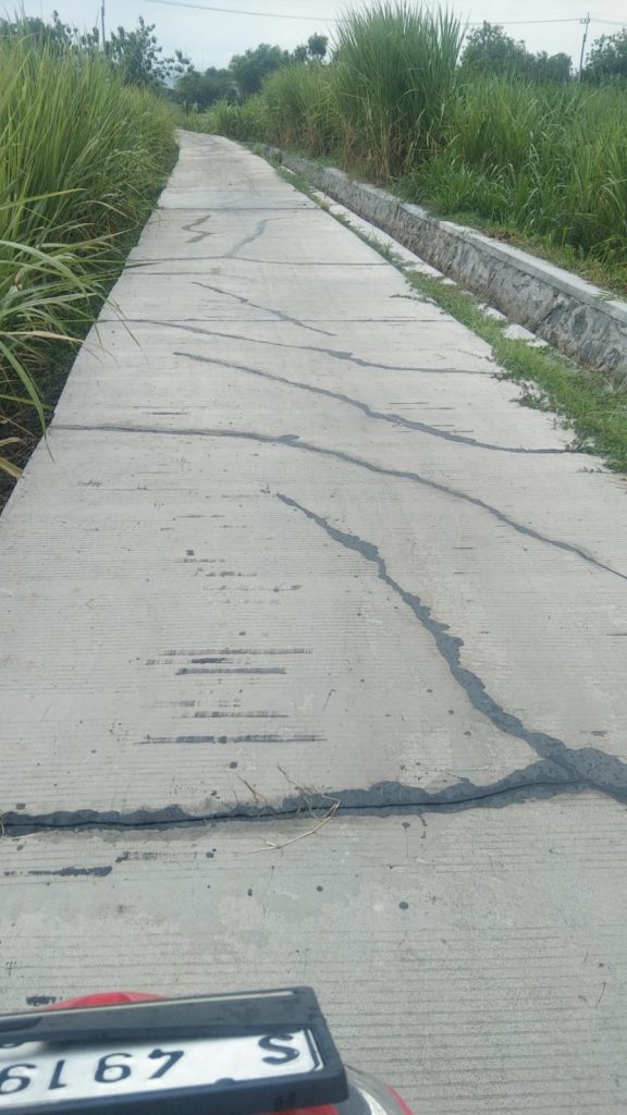 Kerusakan tidak hanya di satu titik saja. Tetapi kerusakan cor itu pecah merata, ada yang pecah dipinggir, pecah di tengah bahkan pecah memanjang.