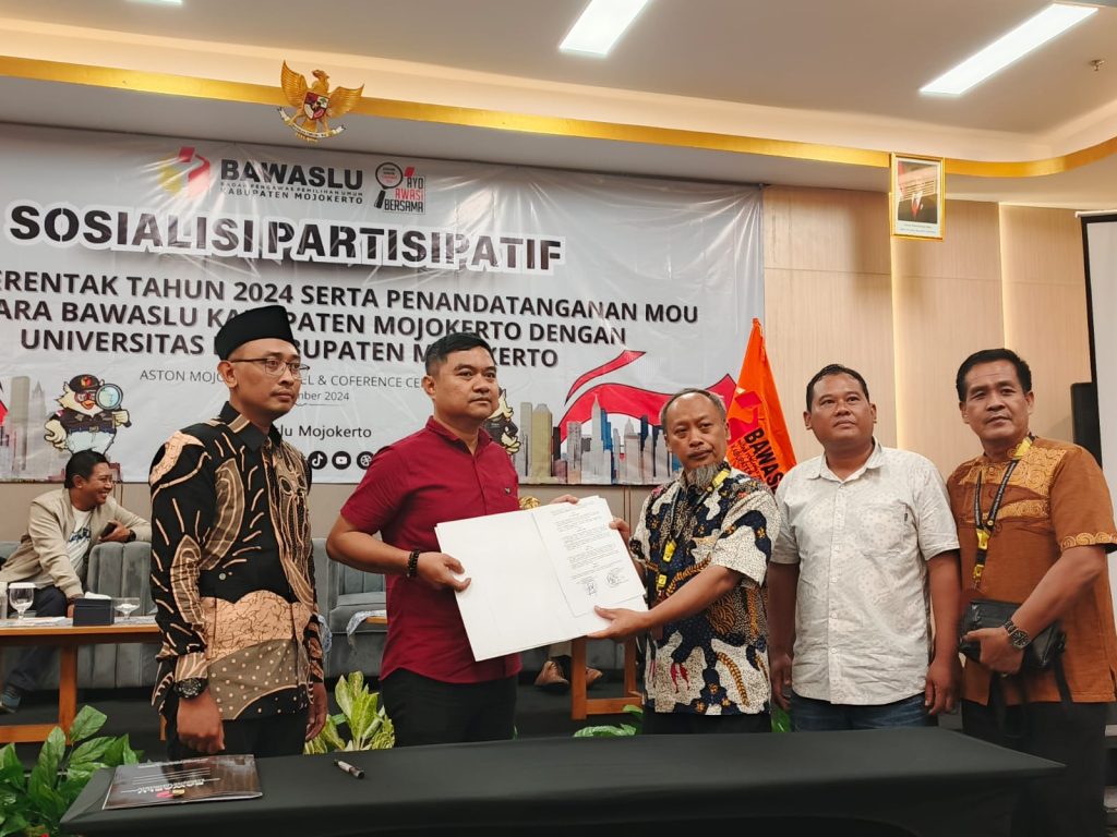 Acara sosialiasi yang juga di-ikuti seluruh PPK, Panwascam, wakil perguruan tinggi dan organisasi kampus se kabupaten Mojokerto, juga melakukan MoU antara Bawaslu Kabupaten Mojokerto dengan 2 Perguruan Tinggi, yakni PPNI Bina Sehat dan Univesitas Agama Islam Sabilul Muttaqim, terkait pengawasan partisipasif.