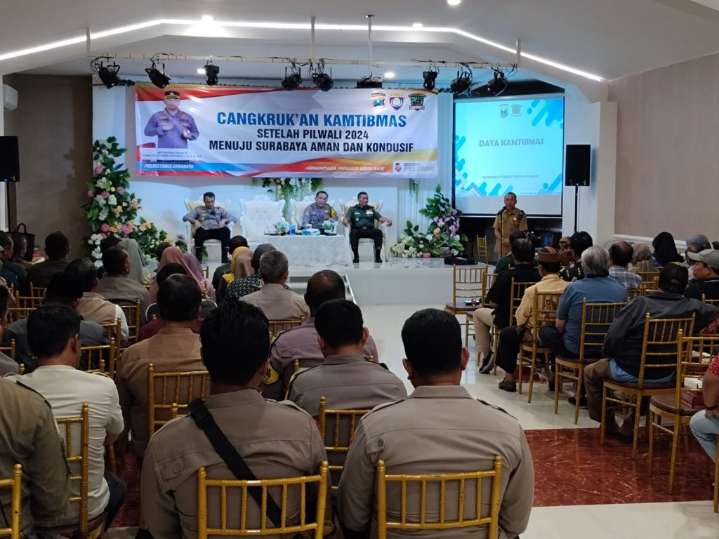 Surabaya, Pojokkiri.com – Cangkrukan Kamtibmas kembali digelar sebagai upaya mempererat sinergi antara aparat keamanan, pemerintah, dan masyarakat guna menjaga situasi Surabaya tetap aman pasca Pilwali 2024. Acara yang berlangsung pada Selasa (17/12/2024) pukul 19.00 – 21.30 WIB di Gedung Mahameru, Jalan Raya Jemursari No. 73, Surabaya, menghadirkan puluhan pemangku kepentingan dari wilayah Kecamatan Wonocolo.