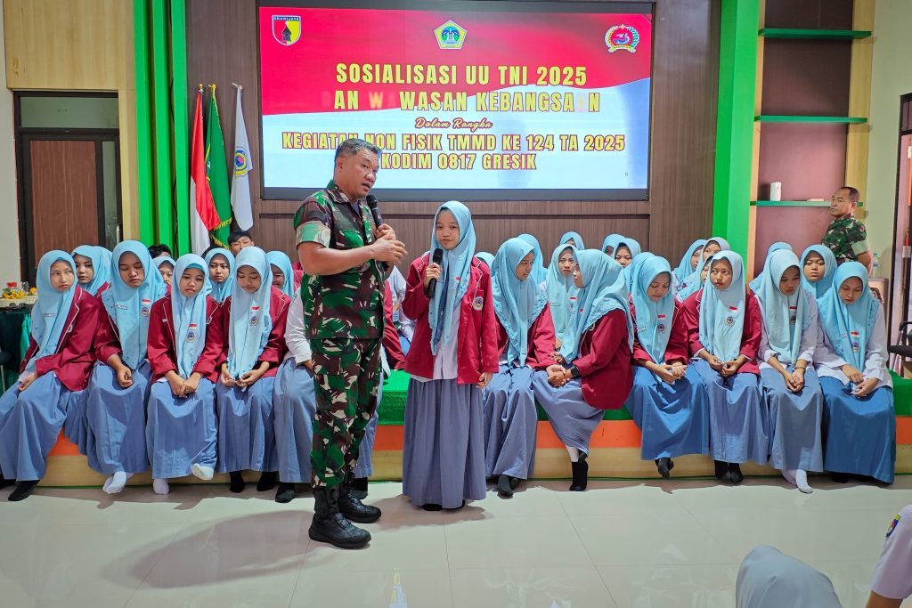 Dalam rangka mendukung program TNI Manunggal Membangun Desa (TMMD) ke-124 Tahun 2025, Kodim 0817/Gresik menggelar kegiatan non fisik berupa pembekalan Wawasan Kebangsaan kepada para pelajar MAN 2 Gresik. Kegiatan ini dilaksanakan di Aula MAN 2 Gresik, Desa Metatu, Kecamatan Benjeng, dan diikuti oleh 285 siswa-siswi yang mengikuti dengan penuh antusias.