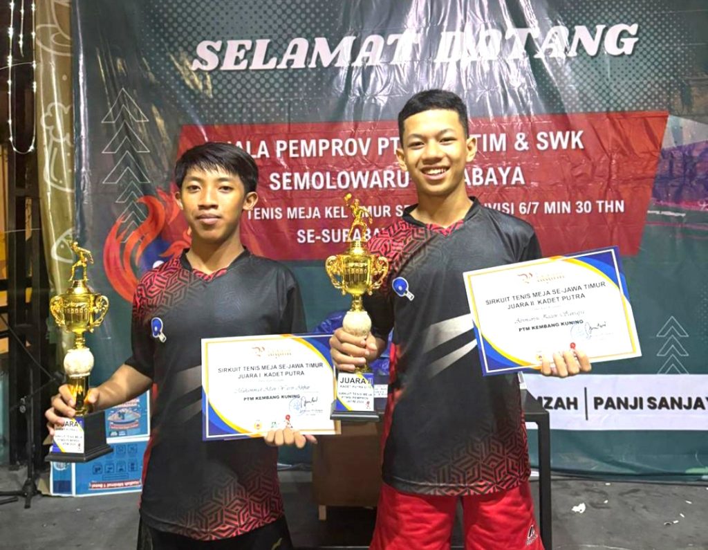 Surabaya Pojokkiri.com – Dua atlet muda berbakat dari PTM Kembang Kuning berhasil mengukir prestasi membanggakan di ajang Sirkuit Tenis Meja Se-Jawa Timur yang berlangsung di Semolowaru, Surabaya, pada Minggu (29/12).