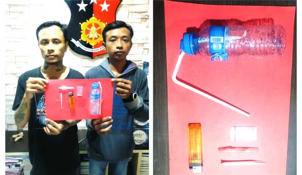 Kedua tersangka yakni, Yudha Dirgantara (28) warga Gamping Wetasan Sidoarjo dan Mochammad Danu Saputro (34) warga Kapas Baru Surabaya, mereka ditangkap saat sedang menggunakan sabu di dalam kamar.