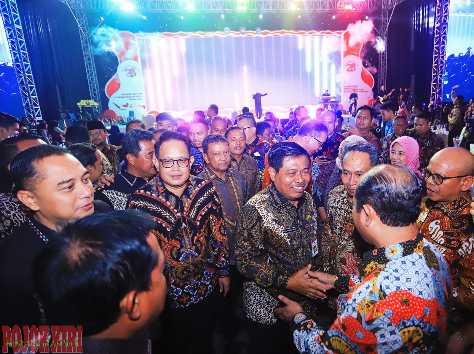 Surabaya, Pojok Kiri- Penjabat (Pj) Gubernur Jawa Timur Adhy Karyono menghadiri Gala Dinner Peringatan Hari Otonomi Daerah (Otoda) ke-28 Tahun 2024 di Ballroom Grand City Covention and Exhibition Surabaya, Kamis (25/6) malam.