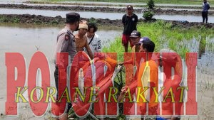 Teks Foto; Jasad Muhamad Ali yang ditemukan meninggal disawah Dusun Kudon, Desa Madulegi, Kecamatan Sukodadi, Kabupaten Lamongan, Rabu (26/10/2022).(lut)