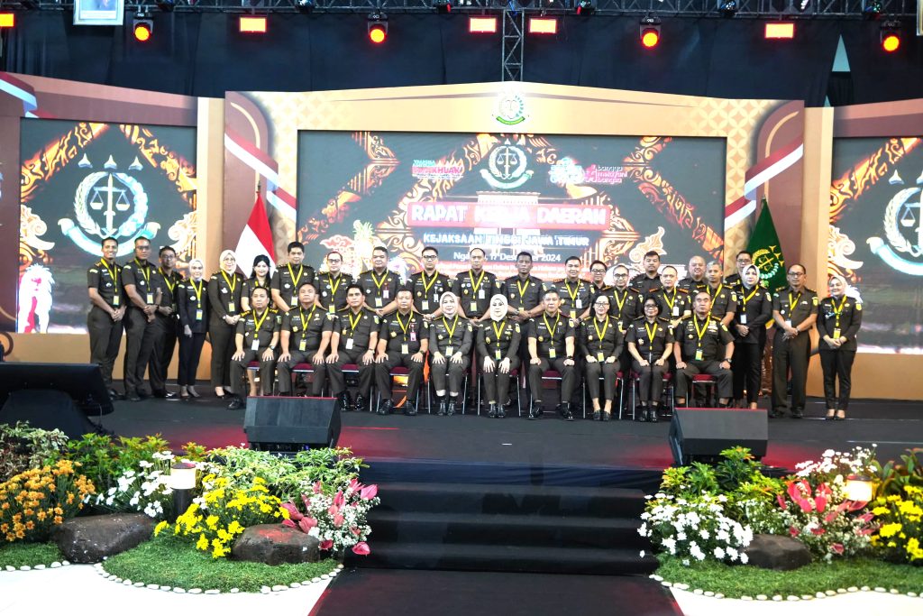 Rakerda Kejati Jatim 2024 mengusung tema “Optimalisasi Peran Kejaksaan Dalam Penegakan Hukum yang Humanis untuk Mendukung Asta Cita Pembangunan yang Berkelanjutan.”