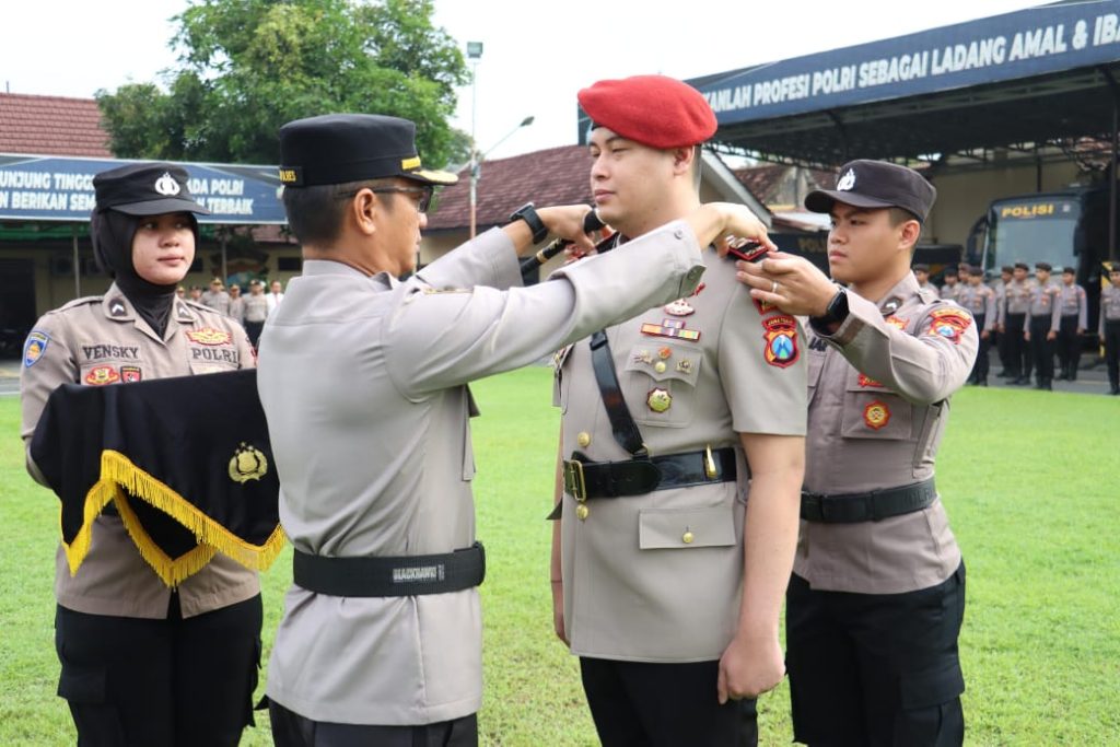 Polres Mojokerto Kota menggelar Upacara Serah Terima Jabatan (Sertijab) di Lapangan Patih Gajah Mada Polres Mojokerto Kota, Selasa (7/1/2025). Kasat Reskrim Polres Mojokerto Kota, AKP Achmad Rudi Zaeny, S.H., M.H dimutasi dan digantikan AKP Siko Sesaria Putra Suma, S.I.K., M.A.P., M.H.
