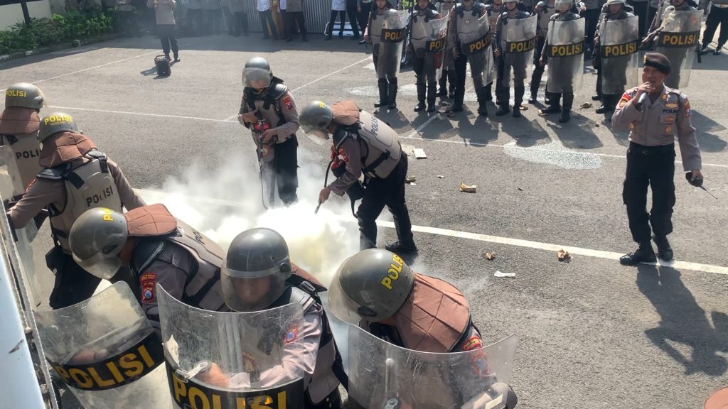 Tahap akhir simulasi melibatkan Tim Raimas yang bertugas membubarkan kerumunan massa aksi unjuk rasa hingga situasi kembali kondusif dan aman terkendali.