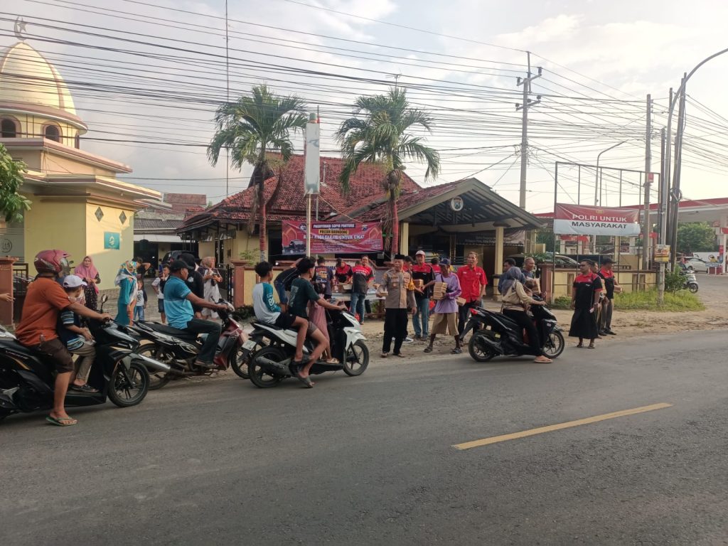 Lamongan, Pojok Kiri.com-Menyemarakkan bulan Ramadhan 1446 H Polsek Polsek Brondong, Polres Lamongan menggelar pembagian takjil gratis dan menyantuni anak yatim piatu.