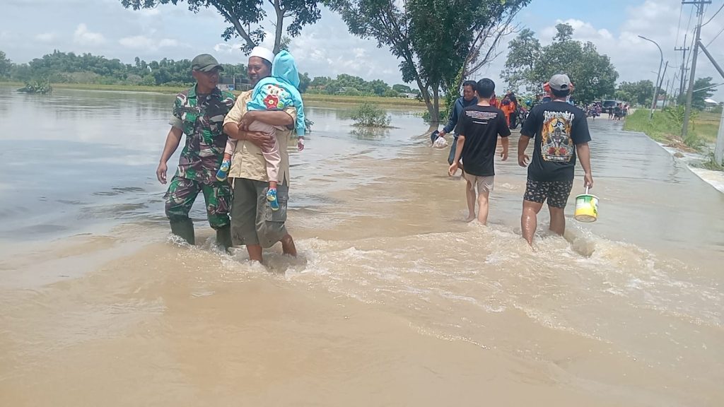 Menanggapi kondisi tersebut, Babinsa Koramil 0817/09 Balongpanggang Serda Budiono bersama BPBD membantu proses evakuasi baik fisik maupun material milik warga terdampak ke tempat yang lebih aman.