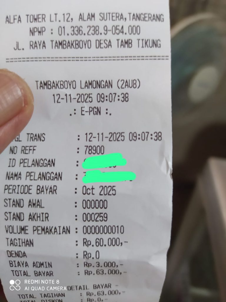 Salah satu warga, Yusnia, mengaku terkejut saat membayar tagihan gas untuk pemakaian bulan Oktober yang dibayar November 2025. Ia harus membayar sebesar Rp62.500, padahal biasanya hanya sekitar Rp20.000 setiap bulan.