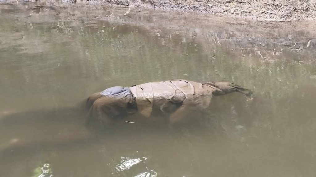 Jasad Sukiman yang ditemukan mengapung di sungai Semampir oleh dua orang pemancing, Selasa (25/3) siang.(Pojok Kiri/istimewa)