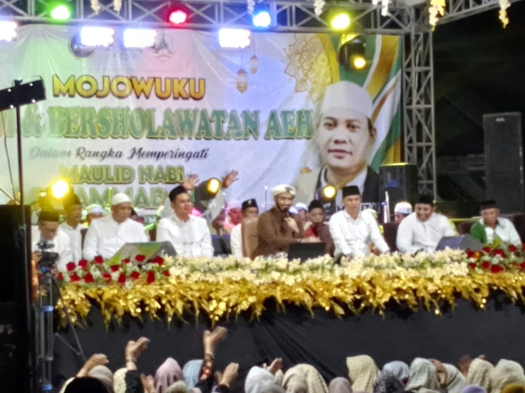 “Saya merasa bangga dapat hadir di tengah-tengah masyarakat Desa Mojowuku untuk bersama-sama bersholawat. Kegiatan ini bukan hanya memperkuat keimanan dan ketakwaan, tetapi juga mempererat tali silaturahmi antar warga. Mari kita jadikan momen ini sebagai pengingat untuk selalu menebarkan kedamaian, Memperkokoh persaudaraan dan menjaga kerukunan di tengah masyarakat,” Ujarnya.