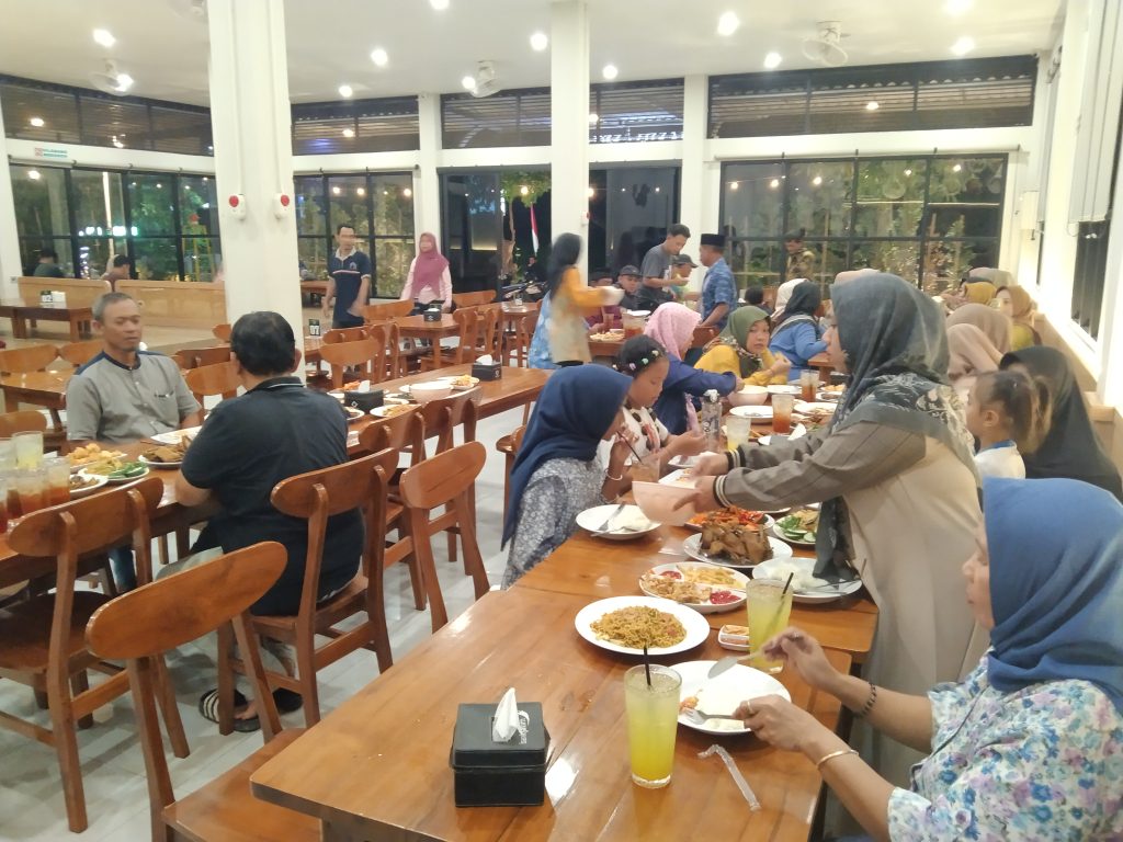 Warga RT. 2 RW. 1 Dusun Karangwungu, Desa Mojogede, menang lomba gebyar lingkungan berseri dalam rangka peringatan HUT RI Ke-80 yang di gelar oleh Kecamatan Balongpanggang, mengelar tasyakuran di Rumah Makan (RM) Pandansari Desa Wahas, Kecamatan Balongpanggang, Kabupaten Gresik, Minggu 17 Agustus 2025 malam.