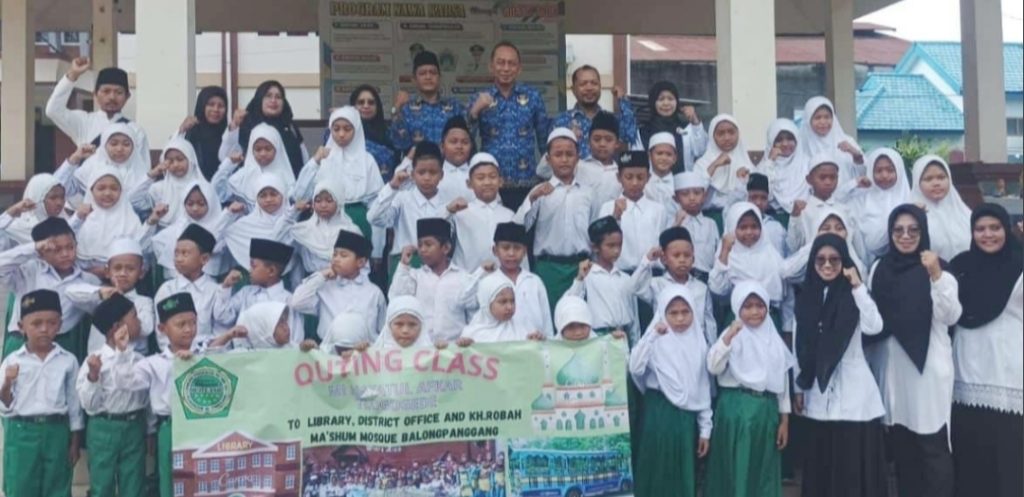 Mendadak pemandangan berbeda terlihat di halaman Kantor Kecamatan Balongpanggang. Bedanya tersebut karena di serbu puluhan anak-anak MI Hayatul Afkar Dusun Tlogogede Desa Ngasin, Kecamatan Balongpanggang, Kabupaten Gresik, secara mendadak menyerbu kantor Kecamatan setempat. Selasa (17/12/2024).