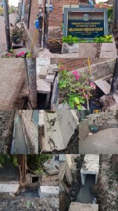 Tanpa dikerjakannya rabbatan beton pada lantai kerja di dasar saluran, hanya terpasang langsung pada dasar tanah yang digali, masih penuh genangan air tanah. Juga tampak di lapangan sebagian tutup plat beton saluran memiliki kualitas yang kurang kuat, tampak banyak kerusakan tutup pada pinggirnya,  dan sebagian telah kondisi retak.Terdapat beberapa lubang saluran dibiarkan terbuka, karena terhalang dengan adanya tiang listrik sebagai penghalang pelaksanaannya.