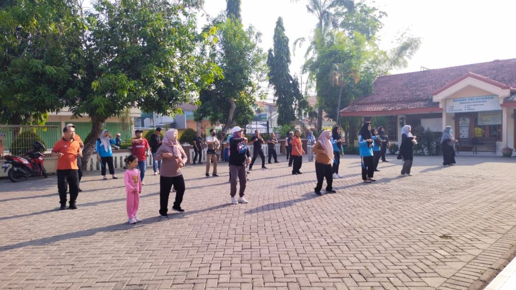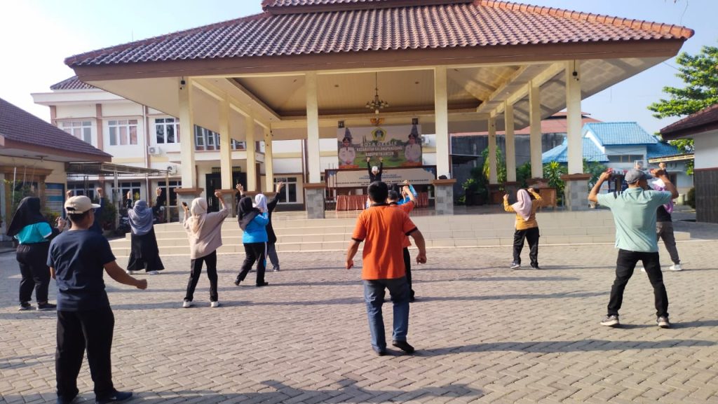 Kegiatan senam bersama dipimpin oleh Plt. Camat Nursalim yang turut memberikan energi positif kepada seluruh peserta.