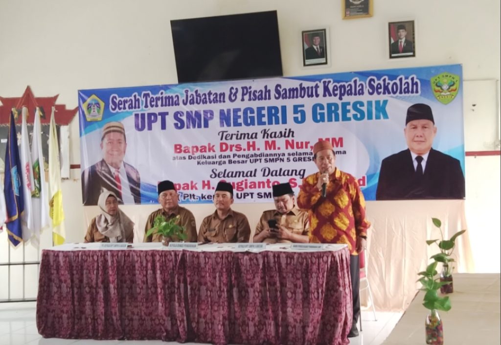 Suasana khidmat menyelimuti acara serah terima jabatan (Sertijab) dan pisah sambut Kepala Sekolah UPT SMPN 5 Gresik.