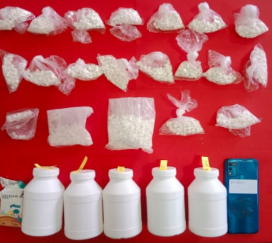 Dari penggeledahan di rumah tersangka, polisi menemukan barang bukti berupa 2.344 butir pil dobel L, 5 botol plastik warna putih,1 bungkus rokok kosong merek Balver dan 1 unit HP Infinix X688B warna biru. Sehingga total barang bukti yang diamankan sebanyak 2.644 butir pil dobel L.