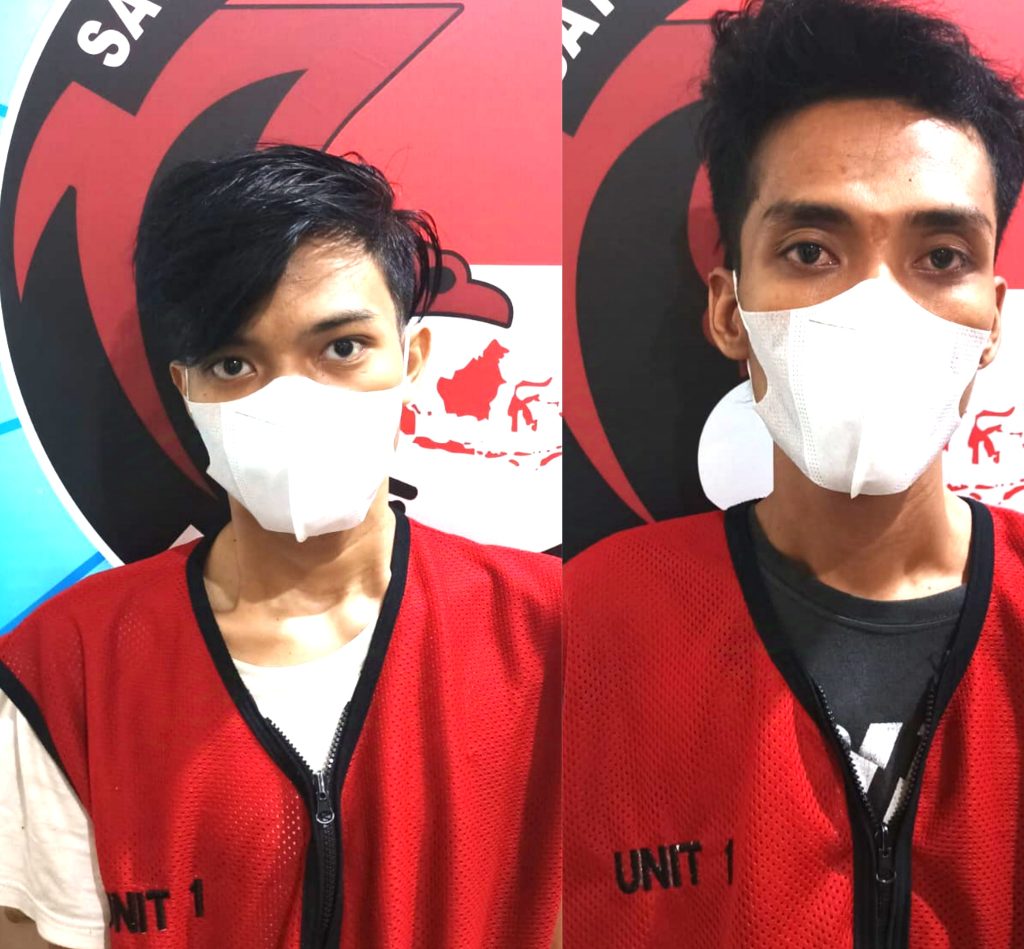 Dua tersangka pengedar sabu, FS (23) dan DF (27), diringkus di sebuah rumah Jalan Kapas Lor Wetan 3 Buntu Surabaya.
