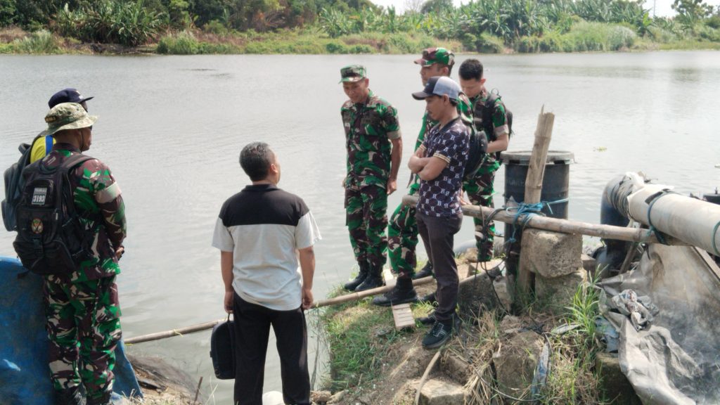 Letda Inf Davis Pjs. Pasiterdim 0817/Gresik yang mendampingi Tim Wasev menunjukkan lokasi pemasangan teknis pompa yang telah diberikan serta penyalurannya langsung di lahan pertanian di wilayah Kecamatan Dukun.