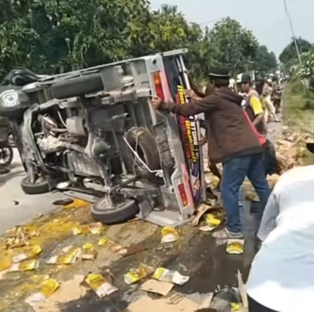 Lamongan, Pojokkiri.com-Kecelakaan tunggal menimpa mobil pengangkut telur milik Agen Telur Alamsyah di Desa Sumberwudi, Kecamatan Karanggeneng, Kabupaten Lamongan, pada Kamis (9/10/2025) sekitar pukul 13.30 WIB.