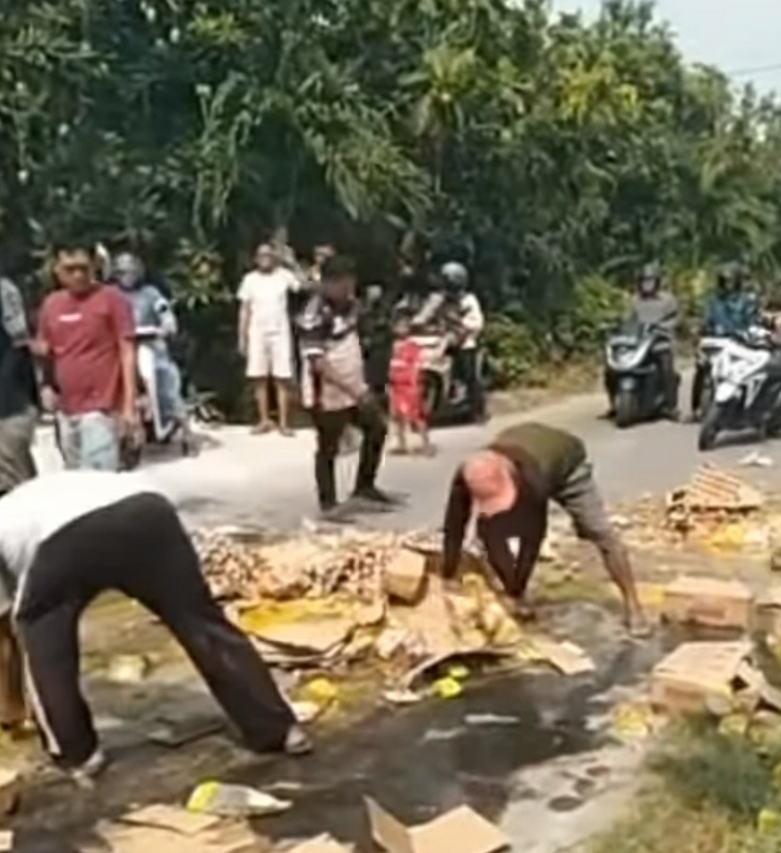 Akibat kejadian tersebut, ratusan butir telur yang diangkut pecah dan berserakan di jalan. Kerugian ditaksir mencapai jutaan rupiah.