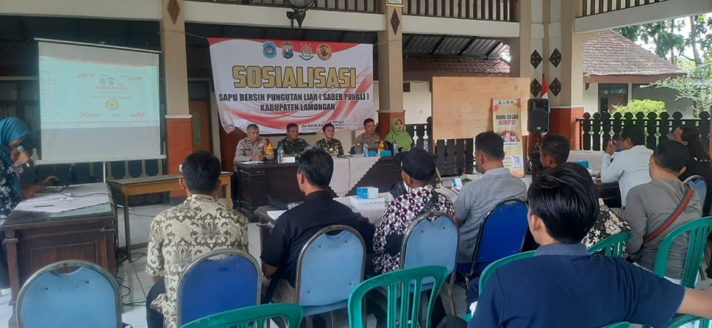 LAMONGAN, POJOK KIRI.com-Satbinmas Polres Lamongan menyelenggarakan kegiatan Sosialisasi Sapu Bersih Pungutan Liar (SABER PUNGLI) pada Jumat siang (22/11) di Pendopo Kantor Kecamatan Ngimbang, Kabupaten Lamongan.