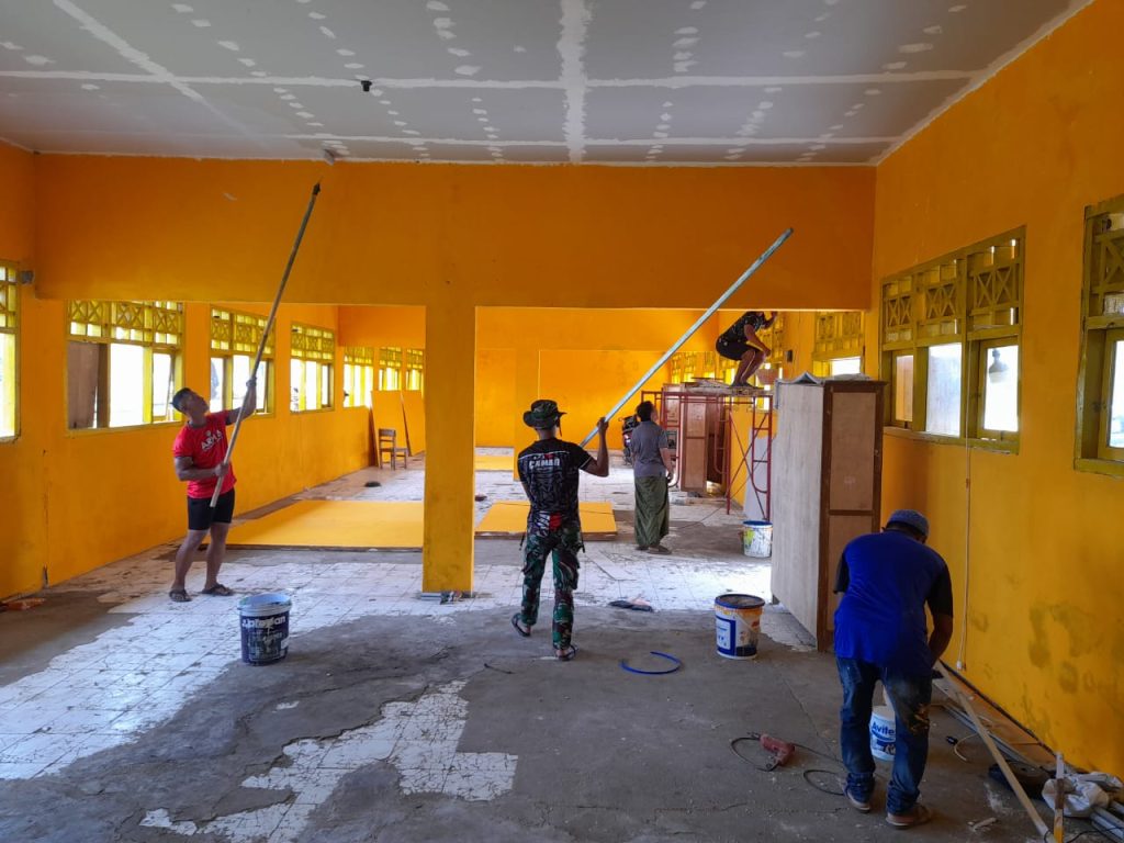 Sasaran fisik TMMD 123 Kodim 0829/Bangkalan yaitu rehabilitasi SDN 3 Katol Timur, kini memasuki tahap pengecatan bagian dalam ruangan dan ada bagian plafon yang baru saja dilakukan penggantian. Personel Satgas TMMD bergotong royong bersama masyarakat dalam pelaksanaan pengecatan tersebut. Minggu (9/3/2025).