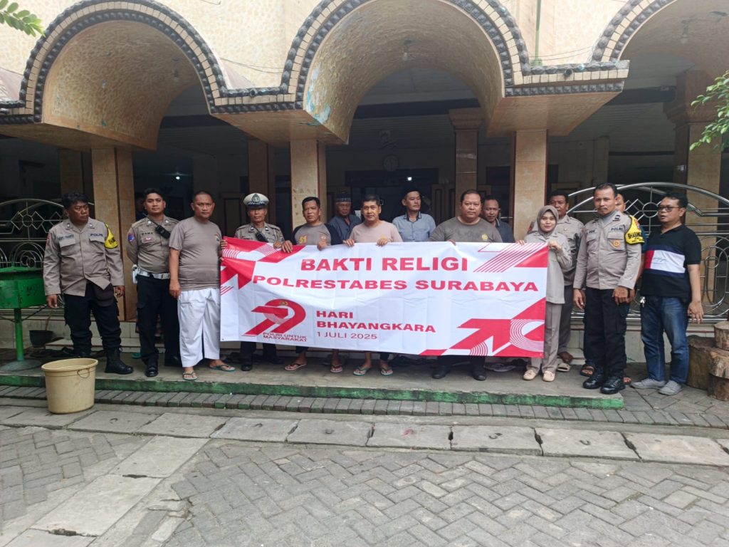Surabaya, Pojok Kiri.Com,-Dalam rangka menyambut Hari Bhayangkara ke-79, Polsek Wonokromo Polrestabes Surabaya menggelar kegiatan Bhakti Sosial dan Bhakti Religi yang sarat makna di Masjid Qowiyuddin, Jalan Jagir Wonokromo, Gang Masjid, Kelurahan Jagir, Kecamatan Wonokromo.