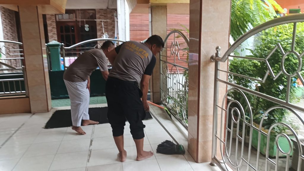 Dalam kegiatan tersebut, para personel Polsek tampak antusias membersihkan area masjid, mulai dari menyapu, mengepel lantai hingga membersihkan kamar mandi. Suasana keakraban pun tercipta saat polisi dan warga bersama-sama bergotong royong menjaga kebersihan rumah ibadah.