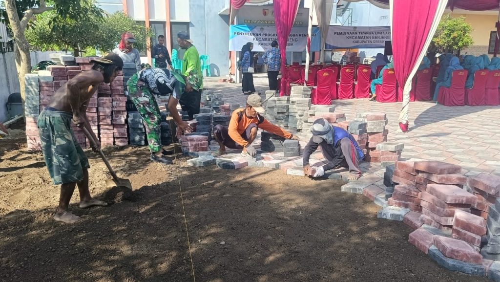 Program TNI Manunggal Membangun Desa (TMMD) ke-124 yang dilaksanakan di wilayah teritorial Kodim 0817/Gresik terus menunjukkan progres signifikan. Salah satu sasaran fisik yang menjadi perhatian yakni pemasangan paving blok di halaman Balai Desa Banter, Kecamatan Benjeng, kini hampir mencapai tahap akhir. Selasa (20/5/2025).