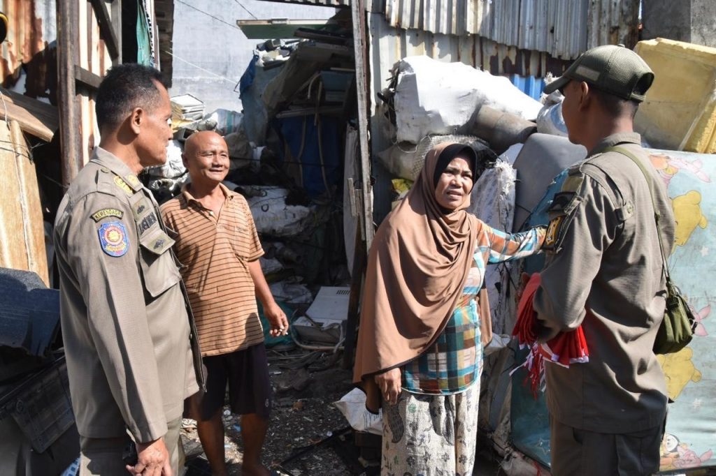 “Satpol PP bersama bapak lurah melakukan sosialisasi dengan memberikan surat peringatan agar pemilik barang mengalihkan barang mereka ke persil milik sendiri, karena banyak ditempati barang-barang seperti palette, sirtu, kayu hingga mobil bekas,” kata Irna.