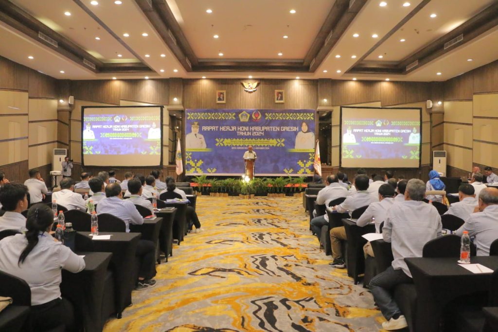 Plt Bupati Gresik, Aminatun Habibah, saat membuka raker menyampaikan rasa terima kasih kepada KONI Gresik atas prestasi atlet asal Kabupaten Gresik. Beberapa waktu lalu atlet Gresik  berhasil meraih 36 medali pada PON XXI Aceh – Sumut 2024 untuk kontingen Provinsi Jawa Timur.